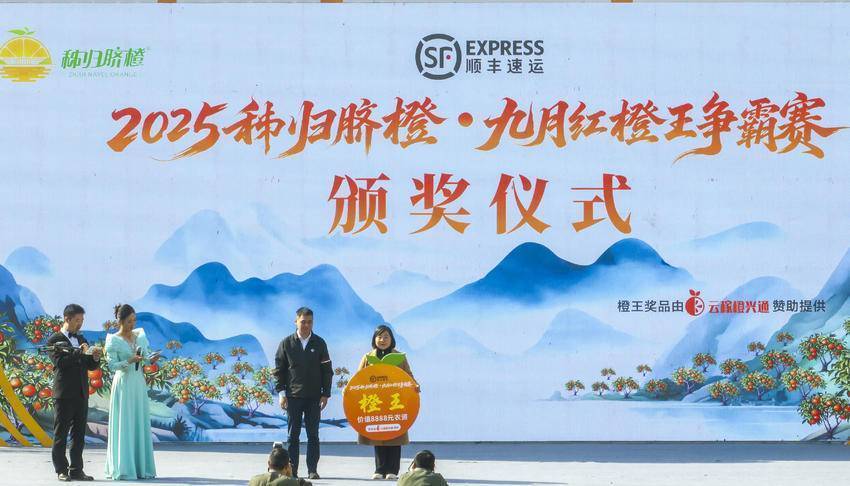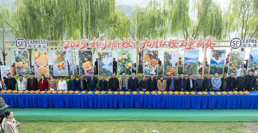2025年11月15日,湖北省宜昌市秭归县水田坝乡,2025秭归脐橙·九月红橙王争霸赛选手亮相展示。