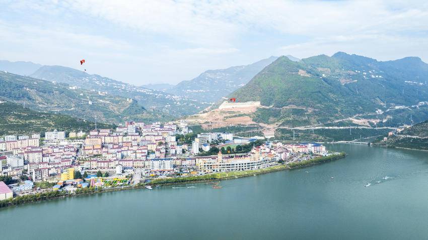 2025年11月15日,湖北省宜昌市秭归县水田坝乡,“秭归脐橙香 甜暖您的秋”九月红开园活动现场滑翔伞、舟艇表演。