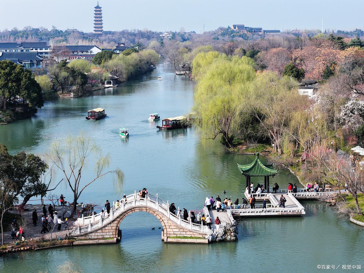 继续往里走,到了五亭桥附近,看见一棵琼花开得正好。白的,不是那种惨白,是带点米色的白,一团一团的。有个姑娘举着手机在那儿转圈找角度,嘴里念叨“怎么都拍不好”。我也有同感。那花开得挤挤挨挨的,但在手机屏幕上就是一片白,看不出那种“满”。后来我想通了——有些东西就是让你看不全的,你非得站那儿,闻着空气里那股说不清的香味,才能明白“烟花三月”不只是个词儿。